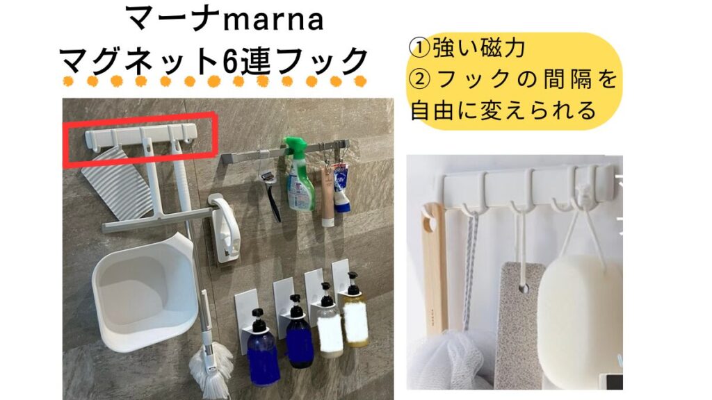 マグネット収納②マーナ(marna) 5連フックで掃除アイテムを収納