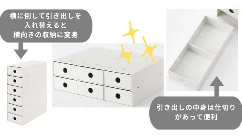 機能的なアイテムが豊富 → 仕切りや引き出し系のラインナップが多い