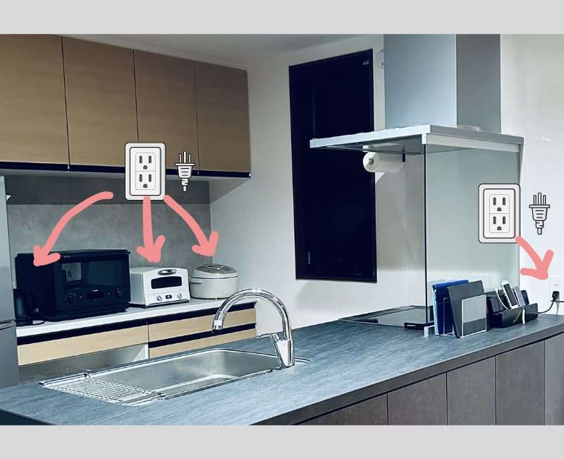 炊飯器、オーブンレンジ、トースター用のコンセントも必要です。