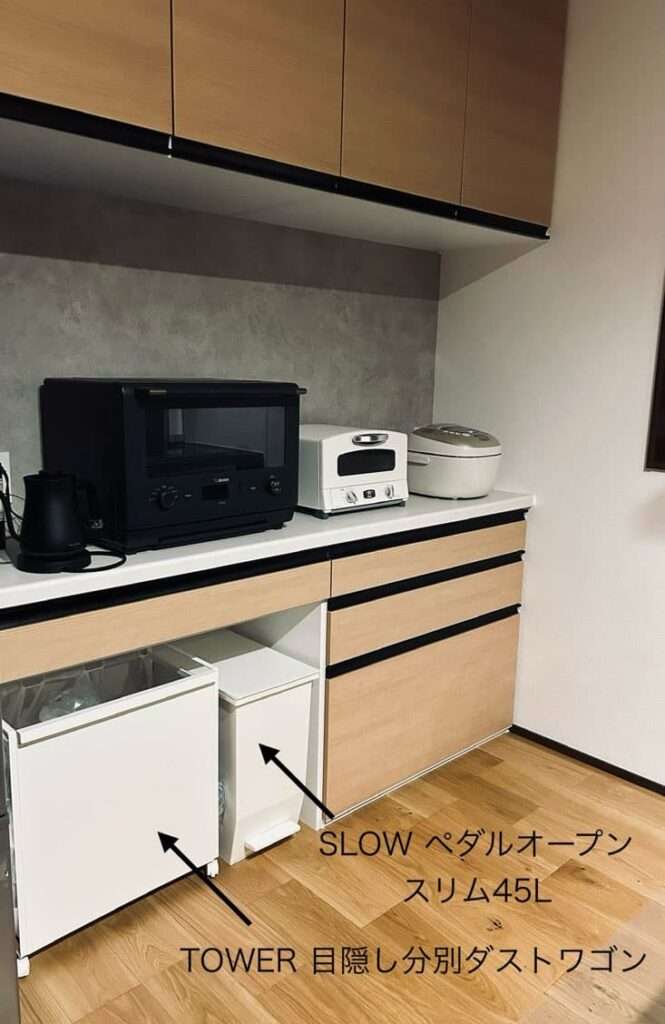 「SOLOW ペダルオープンスリム」と「TOWER 目隠し分別ダストワゴン3分別